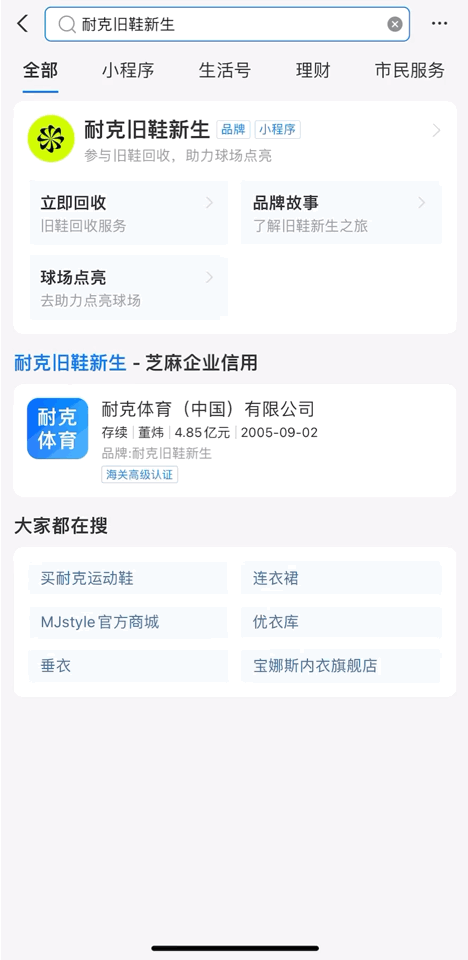 通过支付宝“耐克旧鞋新生”小程序参与行动