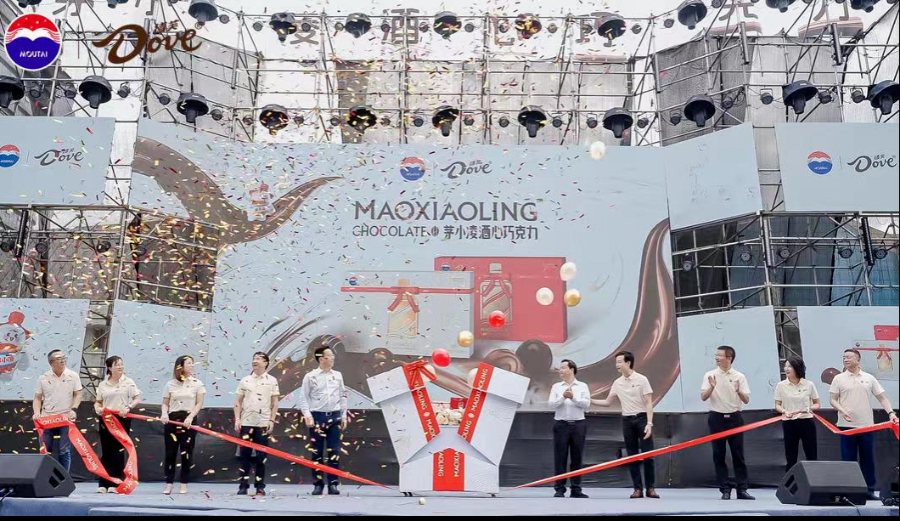 发布仪式上,出席活动的领导嘉宾一同上台,一起拉开丝带,打开包装盒,共同开启“茅小凌酒心巧克力”的浪漫之旅,标志着“茅小凌酒心巧克力”正式上市。