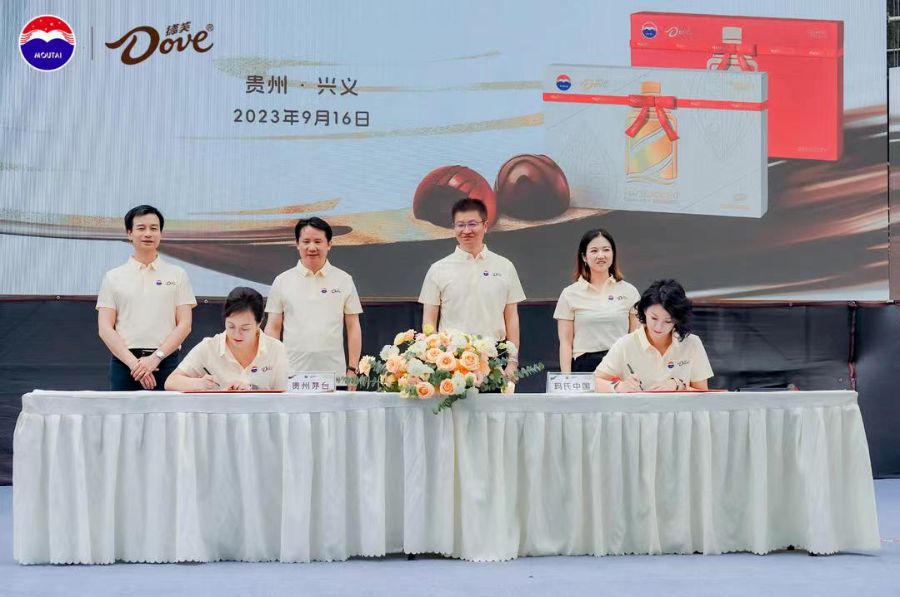 9月16日,贵州茅台与玛氏公司在兴义市举办的国际山地旅游暨户外运动大会上签署战略合作协议,正式推出“茅小凌酒心巧克力”。此次贵州茅台与玛氏公司旗下知名品牌德芙携手推出的“茅小凌酒心巧克力”,是茅台不断创新消费场景,进一步推动品牌年轻化,积极构筑“美酒、美生活、美链接”茅台产业生态的又一举措,也是双方味觉艺术与工艺创新的结晶,代表了东西方多元美食文化的充分融合,将为广大消费者带来一场巧妙的味觉盛宴和温馨的浪漫之旅。