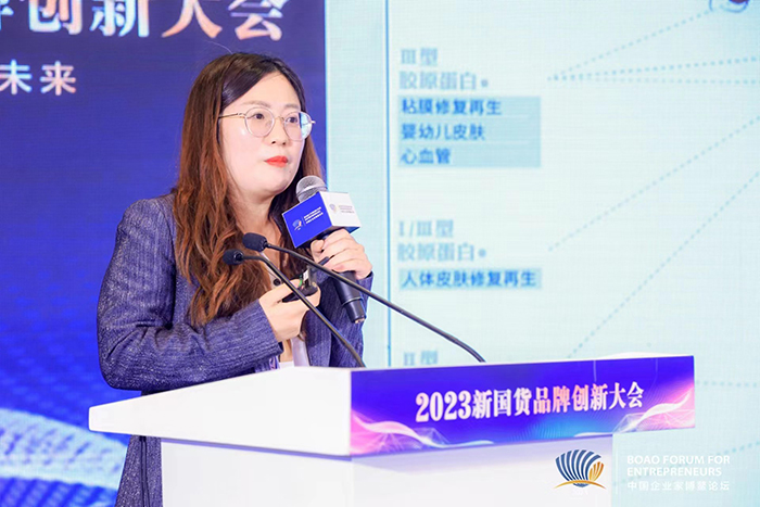 巨子生物CFO张慧娟带来《巨力赋能、科创助美,引领胶原新时代》主题分享。她从胶原蛋白行业趋势以及未来发展潜力、不同化妆品原料所处阶段等方面分析了胶原蛋白的市场发展现状。她表示,巨子生物将加强研发投入,持续进行科技成果转化,生产研发出更多有创新性的高质量原料,带给美业产品和品牌或者配方更多的选择,打造出更安全、更有效的产品,推动中国美业高质量发展。