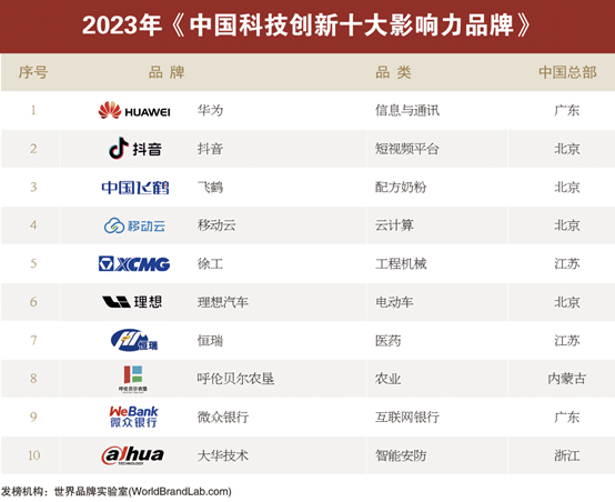 为表彰那些注重技术研发与创新、积极履行社会责任和可持续发展的优秀品牌,世界品牌实验室特别推出中国知识产权、中国国潮和中国科技创新、中国绿色生态十大影响力品牌。中国飞鹤凭借其在脑发育及营养方面的科研领先成果,荣膺2023年“中国科技创新十大影响力品牌”。
