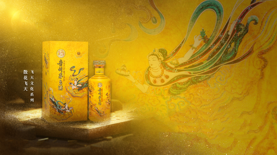 绚丽多姿的莫高窟壁画、栩栩如生的飞天壁画,将新品文化精美传神地融合展现,一曲特色舞毕,“散花飞天”在2024全球茅粉嘉年华正式发布亮相。