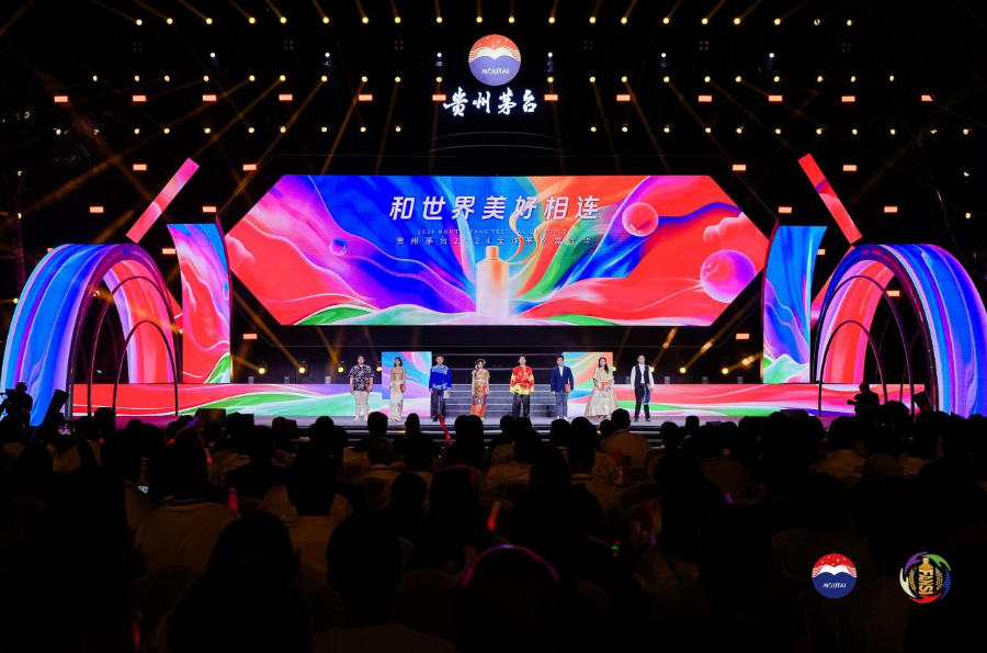 随后,以“和世界美好相连”为主题的贵州茅台2024全球茅粉嘉年华跨年晚会在大型灯光歌舞秀《偕美共赴》中拉开帷幕。