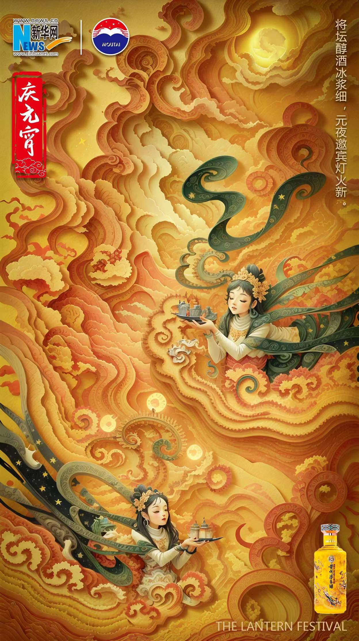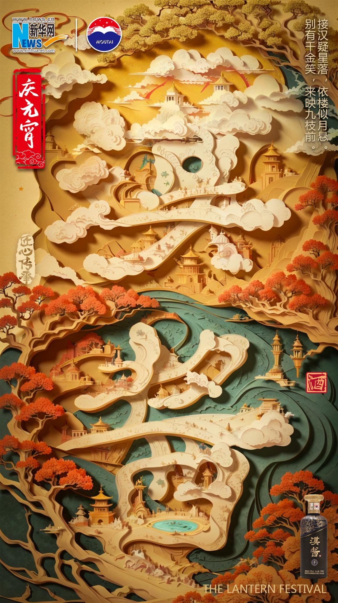 今日元宵,恰逢满月发生。新华网与茅台联合制作推出AI海报,将中国传统吉祥元素——满月、祥云、山水、松柏、敦煌飞天等以中国工艺美术剪纸、浮雕的形式揉和,韵味融于美酒之中,祝福网友龙年幸福安康。