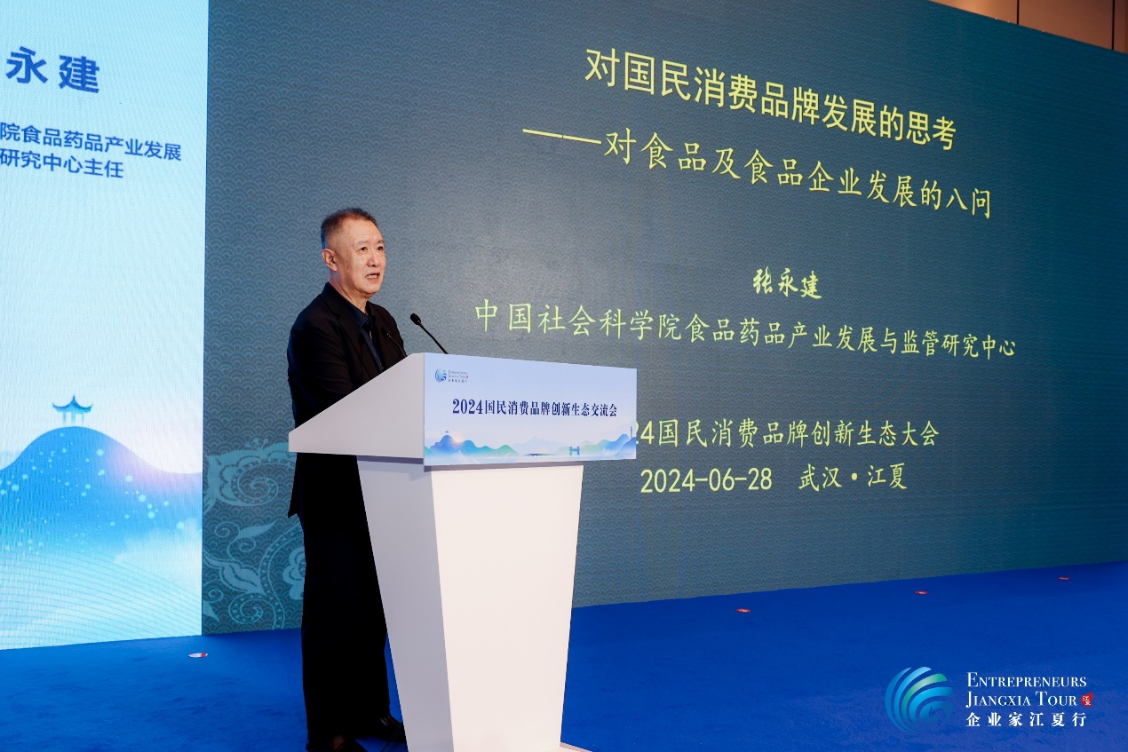 新华网北京6月28日电(任禹西)6月28日,由新华社湖北分社、新华网、中国企业改革与发展研究会、浙江省企业联合会主办的“向新而行向上生长——2024企业家江夏行”平行交流会“2024国民消费品牌创新生态交流会”在武汉市江夏区举行。中国社会科学院食品药品产业发展与监管研究中心主任张永建发表了题为《对国民消费品牌发展的思考——对食品及食品企业发展的八问》的演讲。