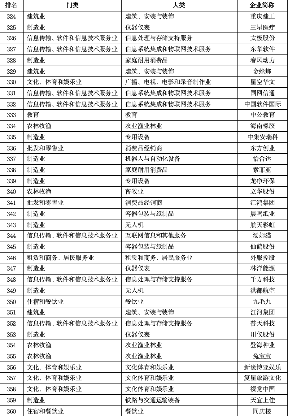 附:中国产业领军企业榜单(注:360家领军企业基础榜单以大类产业前四名为序,副榜单以综合排名为序。)