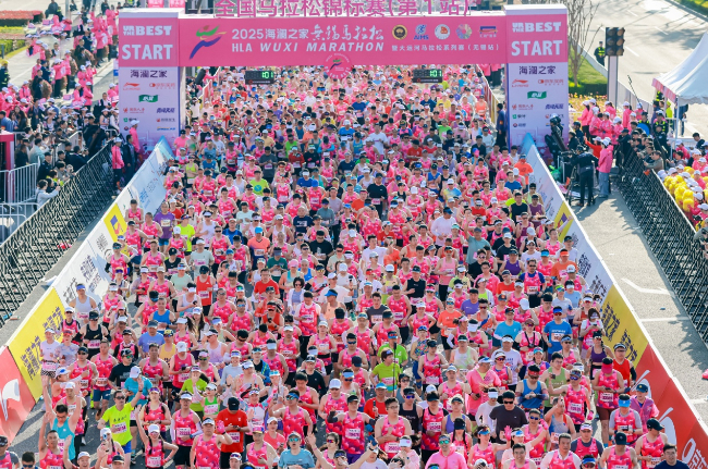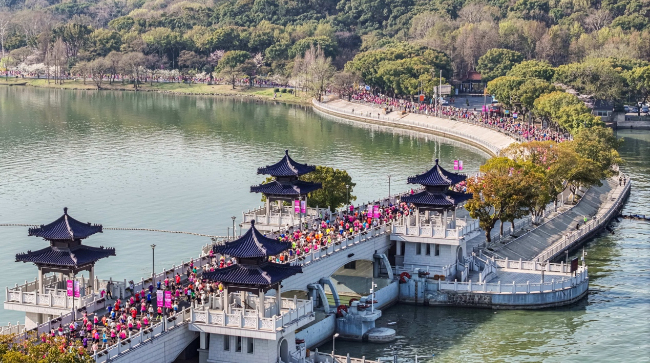 3月23日,太湖之畔樱花纷扬,随着发令枪响,2025海澜之家无锡马拉松开跑。