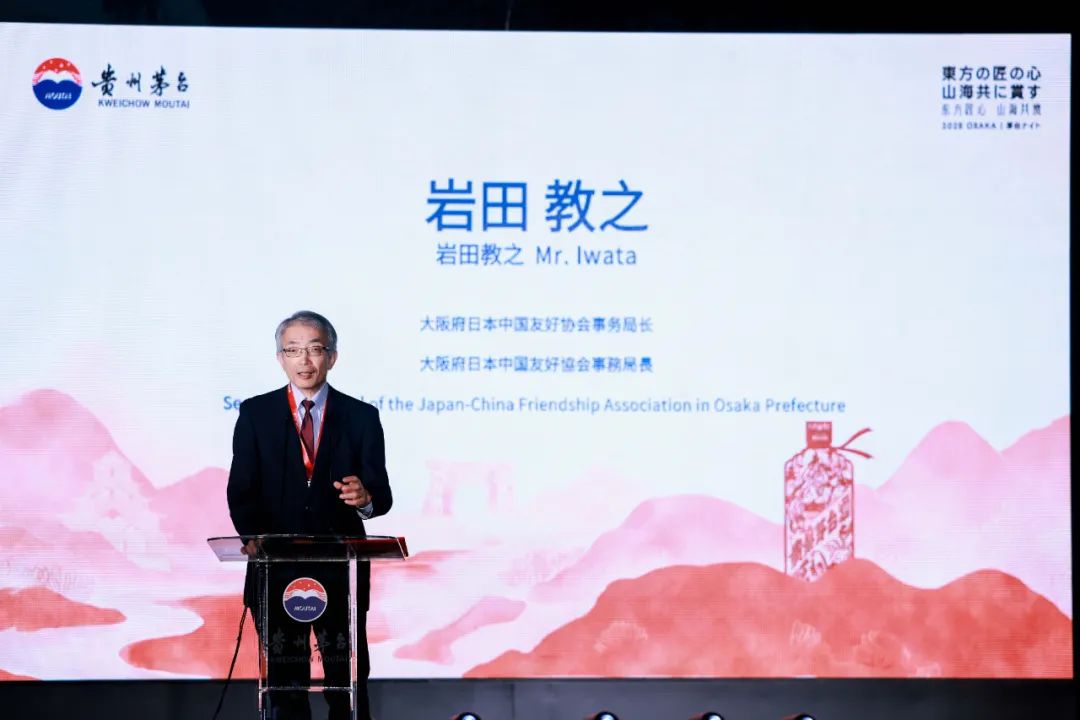 “我爱茅台酒,希望能在日本更多地方看到茅台酒。”大阪府日中友好协会事务局局长岩田教之在致辞中表示,非常高兴能和茅台的朋友们,在大阪一起品尝茅台酒的芳香、进一步了解茅台酒的历史、回顾日中友好的历程和发展,让中国的酒文化为日中友好未来再放光彩。希望茅台酒能为日中友好贡献更多美好的记忆,也祝愿茅台在大阪一切顺利、越来越好。