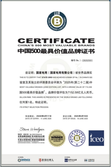 6月18日,第二十二届世界品牌大会在北京举行,主办方世界品牌实验室发布了2025年《中国500最具价值品牌》分析报告。国家电网以7152.58亿元的品牌价值排名榜首,品牌价值较去年增加613.72亿元,同比增长9.39%。这是国家电网品牌连续十年位居该榜榜首。