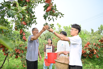 在果园里,果农李叔正为少量早熟苹果无法及时销售而发愁。“不能让果子烂在地里!”队员们二话不说,主动帮忙采摘,并提议在路边摆摊零售。大家搬来纸箱当作展台,刚摆好的苹果就吸引了过往村民和游客,不一会儿便销售一空。李叔高兴地说:“你们这些学生娃,办法真多,可帮了大忙!”