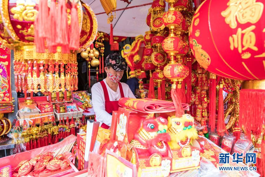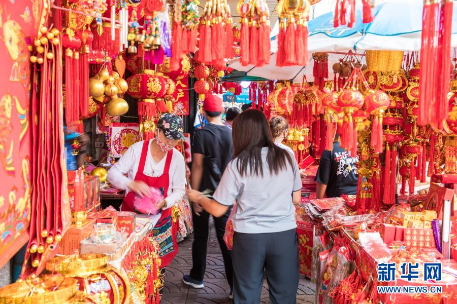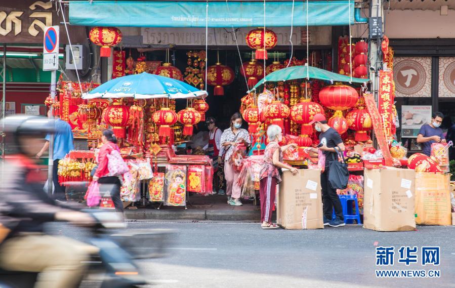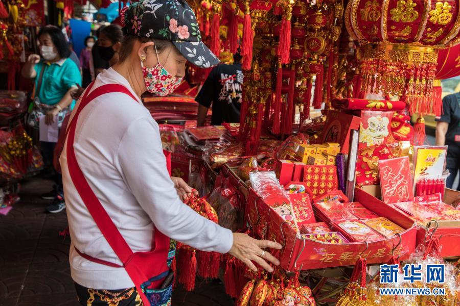 1月27日,人们在泰国曼谷唐人街购买春节装饰物。 随着农历春节临近,泰国民众开始采购春联、灯笼等年货迎接这一节日的到来。泰国政府于2020年12月29日首次将中国春节列为泰国法定假日。 新华社记者 张可任 摄