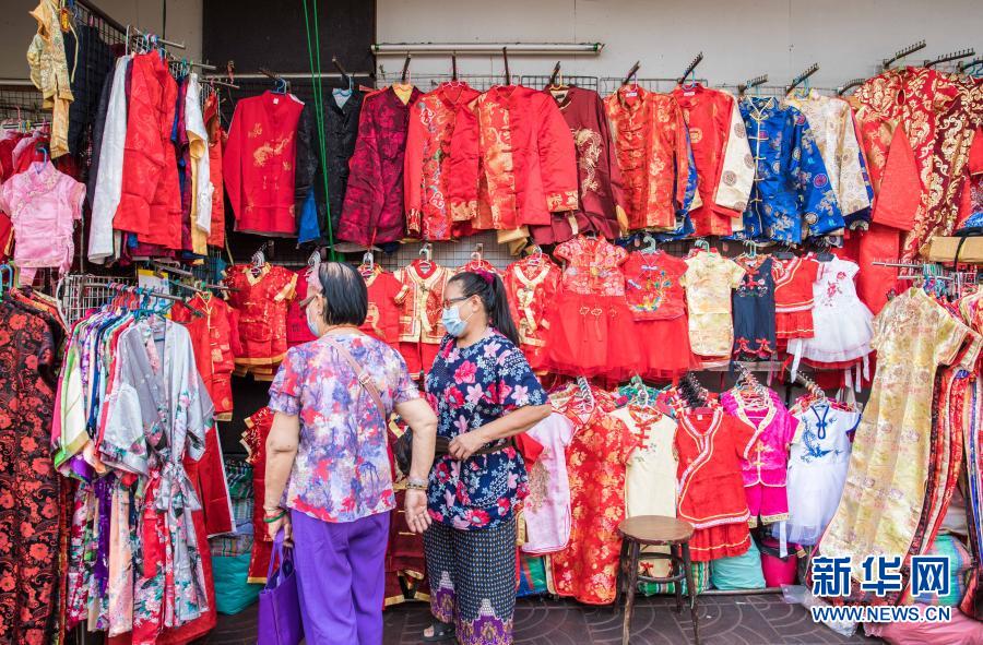 1月27日,人们在泰国曼谷唐人街购买节庆服装。 新华社记者 张可任 摄
