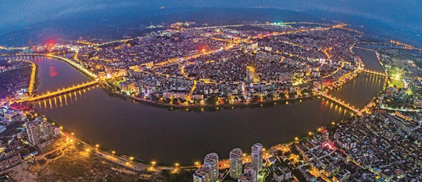 潮州古城,金山峙其北,笔架山列其东,葫芦山卧其西,韩水绕郭南流,自然构成一幅“三山一水护城郭”的山水走势图。2017 年,一江两岸夜景项目围绕“一江两岸三山屹,明灭楼台号昌黎,水呈乡愁丹青韵,和风伴月思无邪”的设计理念,打造了一幕“凤城之光”,让潮州夜景看得见山、望得见水、记得住乡愁;诗的意境、画的取景,一江两岸既在画中,又在诗中,展现了韩江的秀丽胜景,也折射出潮州的人文高度。
