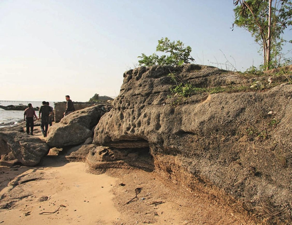 柘林湾海域内西澳岛涌尾山北侧,有成片的苍劲松柏,树木茂盛,环境幽静,10 万余只国家二级保护动物黄嘴鹭鸶鸟在这里栖息、繁育,是名副其实的“白鹭天堂”。在柘林湾西岸的海山岛上,有一座宽约七八十米、高约十余米、长约三千米的贝壳冲积岩,它一字横卧于海滩上,挡风阻浪,成为天然的大海堤。岩层由于长年累月经受日晒雨淋、水蚀潮侵,表面鳞皱成纹,而且出现多处天然“洞”。乍一看,像一座古长城,城门洞开;又像一条长龙横卧,鳞甲斑斑,被誉为“中华海龙”。