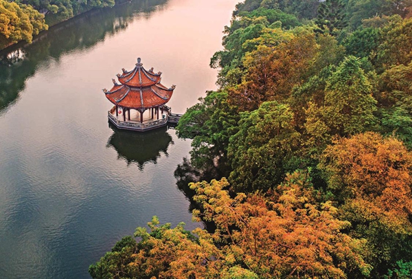 潮州西湖,山倚湖苍翠,湖傍山青黛。昔时,潮州西湖是潮州古城的护城濠,俗称“城壕池”。随着城市建设重心的西移,这里已成为古城区与新城区绿色的分水岭,也是名城一脉相承的纽带。