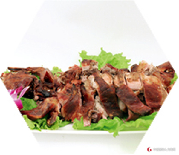 在蒙语中,烤全羊称“昭木”,它是蒙古民族的“餐中之尊”。蒙古族烤全羊一般选用20千克左右的绵羊腹内加香料整体烤制而成。据传,烤全羊是成吉思汗最喜爱吃的一道宫廷名菜,也是元朝御宴“诈马宴”中不可或缺的一道美食,是成吉思汗接待王公贵族、犒赏凯旋将士的顶级大餐。
