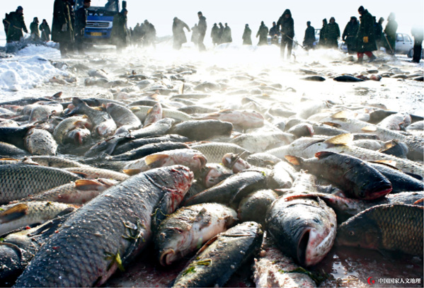 如今,冬春捕鱼已成为大庆的一项文化传统,渔猎文化得以传承和发扬,各民族之间借此交流融合,传统文化正成为人们关注的焦点。来自全国各地的游客开始对大庆的渔猎文化产生兴趣,吃全鱼宴成了人们冬天里的一场饕餮盛宴。