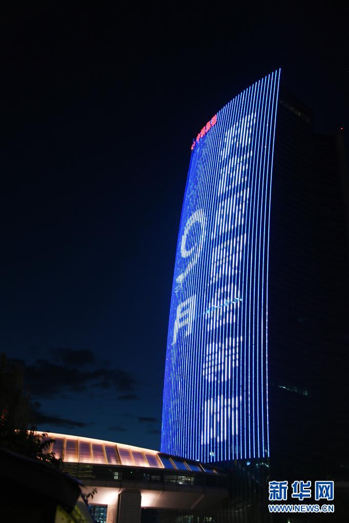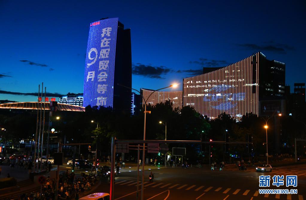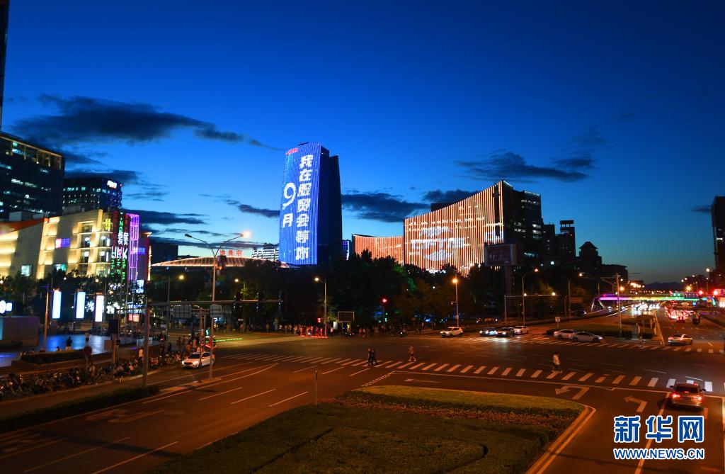 这是8月1日在北京市海淀区中关村大街拍摄的2021年服贸会户外灯光展示。 新华社记者 任超 摄
