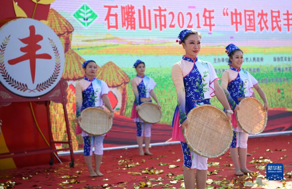 9月23日,演员在宁夏石嘴山市平罗县举办的中国农民丰收节活动上表演丰收舞。 新华社记者 王鹏 摄