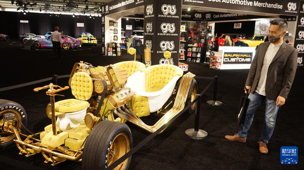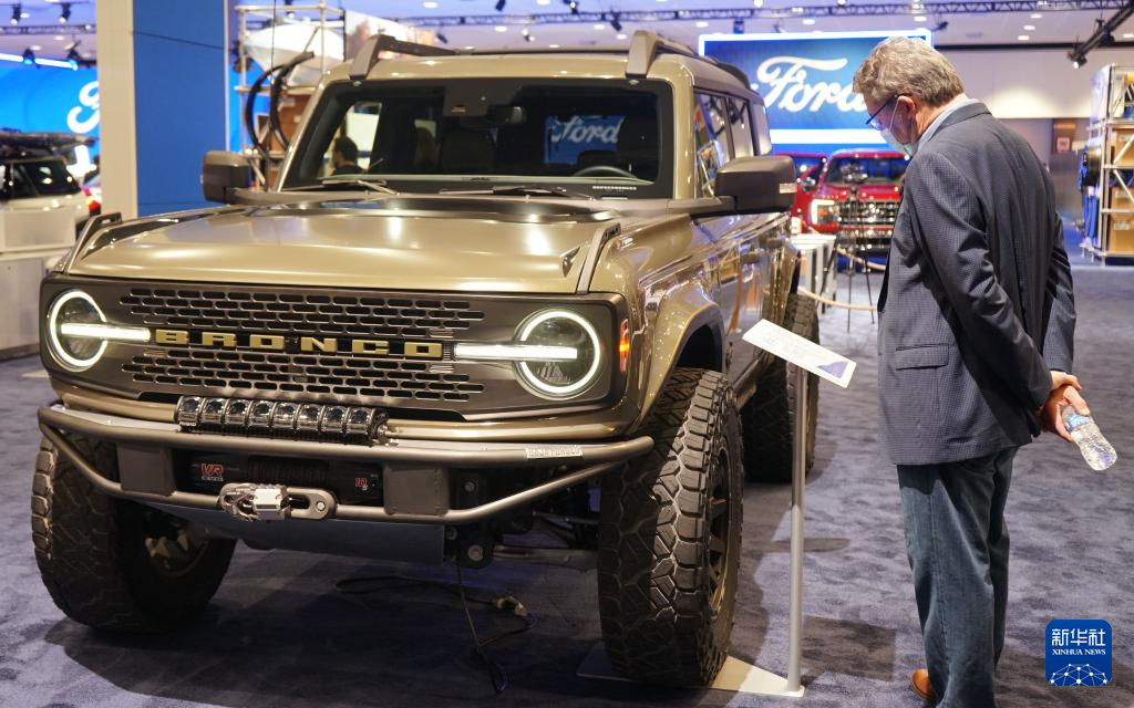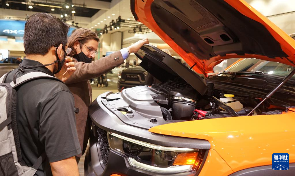 11月17日,一名男子在美国洛杉矶车展媒体预展上参观。 因疫情中断一年后,洛杉矶车展将于11月19日至28日对公众开放。 新华社发