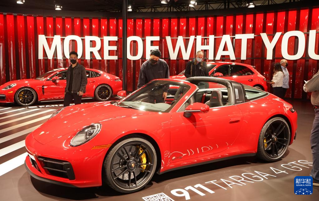 11月17日,人们在美国洛杉矶车展媒体预展上观看参展汽车。 新华社发