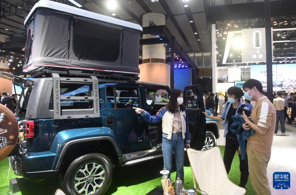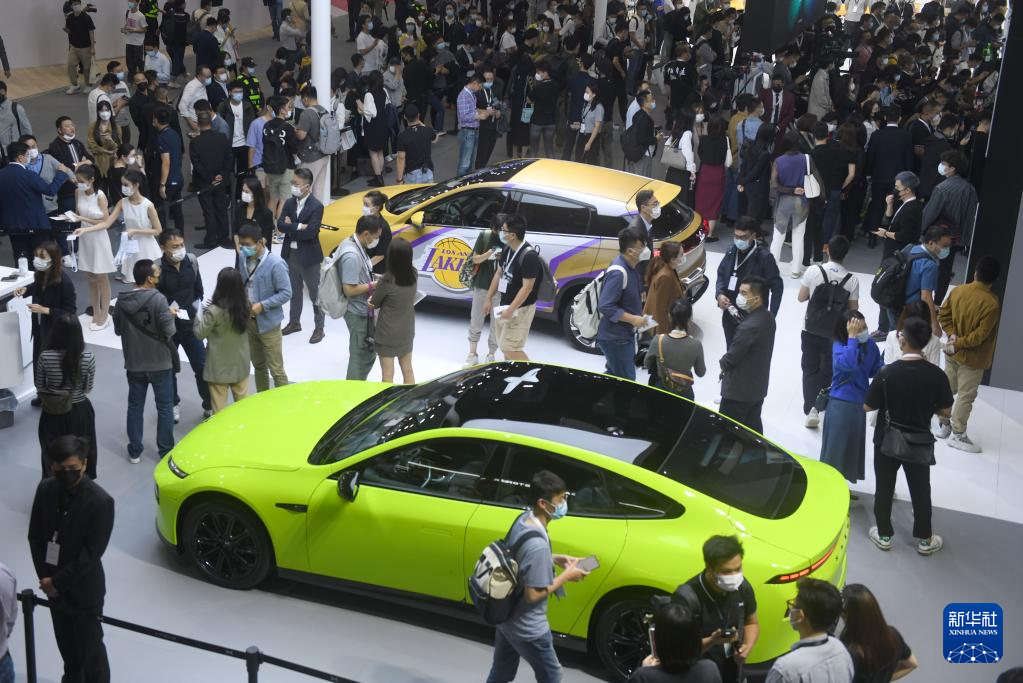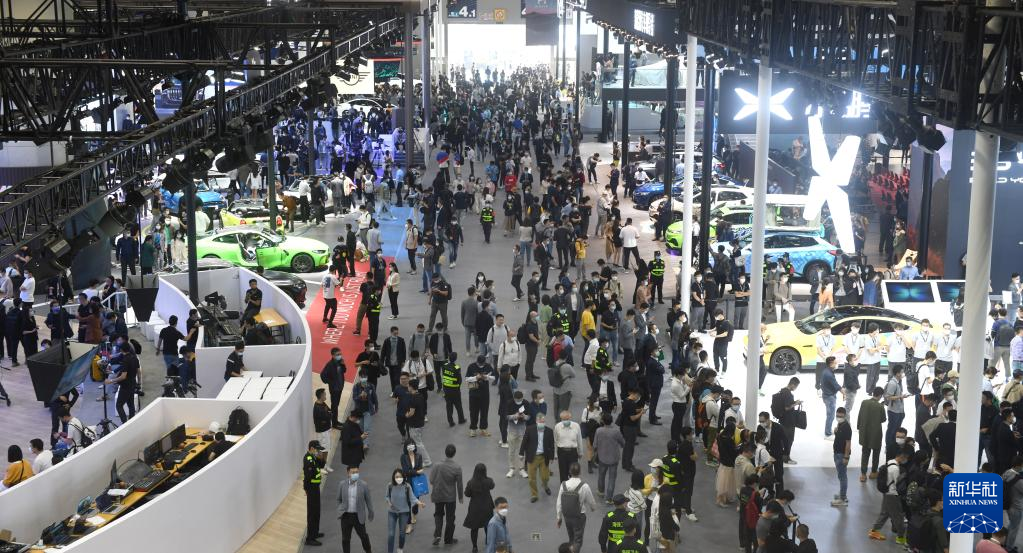 11月28日,观众在车展上参观。 当日,2021第19届广州国际汽车展览会闭幕。本届车展吸引了国内外众多汽车厂商和汽车零部件厂商前来参展,共有54台新车全球首发,展车总数达1020台。据介绍,本届车展共吸引观众78.5万人次。 新华社记者 卢汉欣 摄