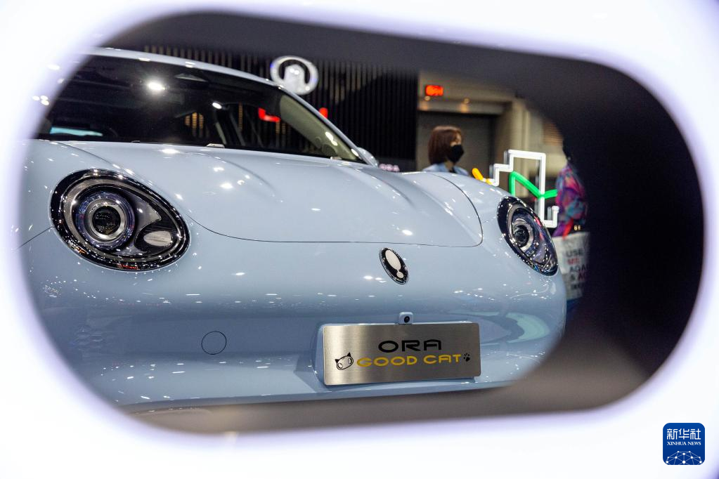 这是12月1日在泰国曼谷举行的第38届泰国国际车展上拍摄的欧拉好猫电动车。 新华社记者 王腾 摄