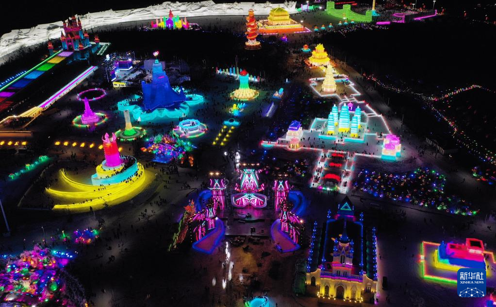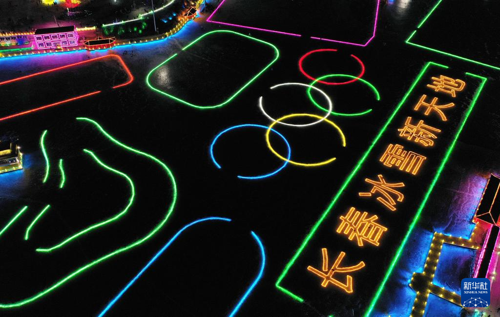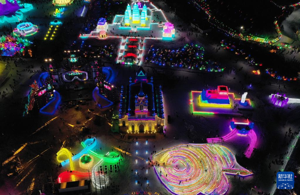 这是12月12日拍摄的长春冰雪新天地一角(无人机照片)。 当日,第25届长春冰雪节在长春冰雪新天地盛装启幕。本届冰雪节主题为“长春冰雪喜迎冬奥”。 新华社记者 林宏 摄
