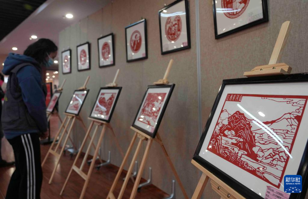 12月20日,人们观看红色主题剪纸作品。 当日,第二届江西高校大学生红色文化论坛暨“红色走读”优秀作品展在南昌市豫章师范学院举行。展览展出包括剪纸、模型等各类红色主题作品100余件。 新华社记者 周密 摄