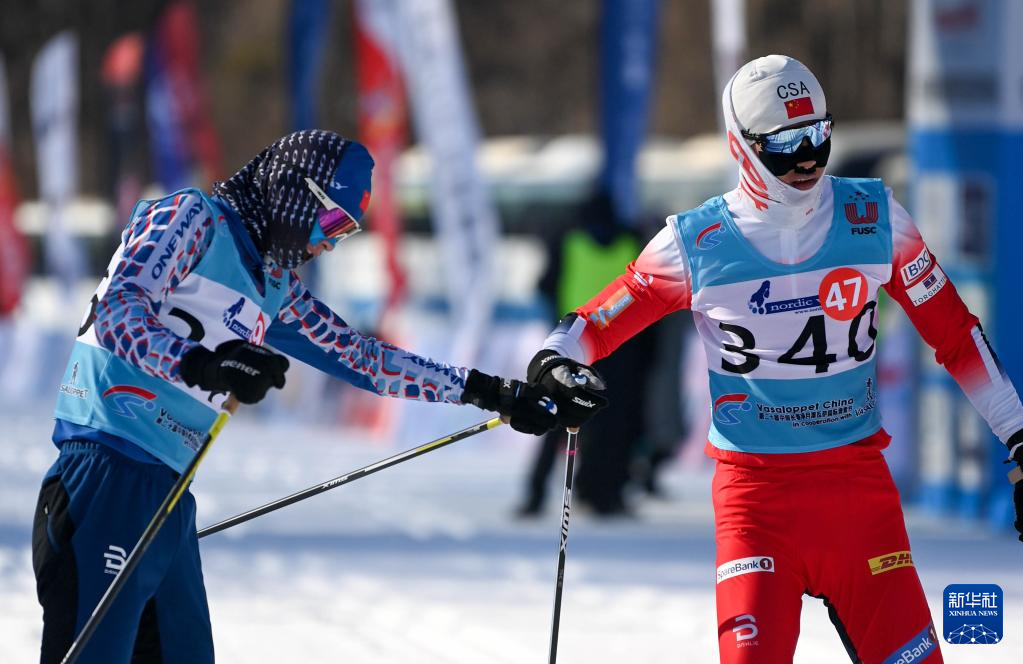 1月4日,参赛选手在终点击拳庆祝完成比赛。 新华社记者 颜麟蕴 摄