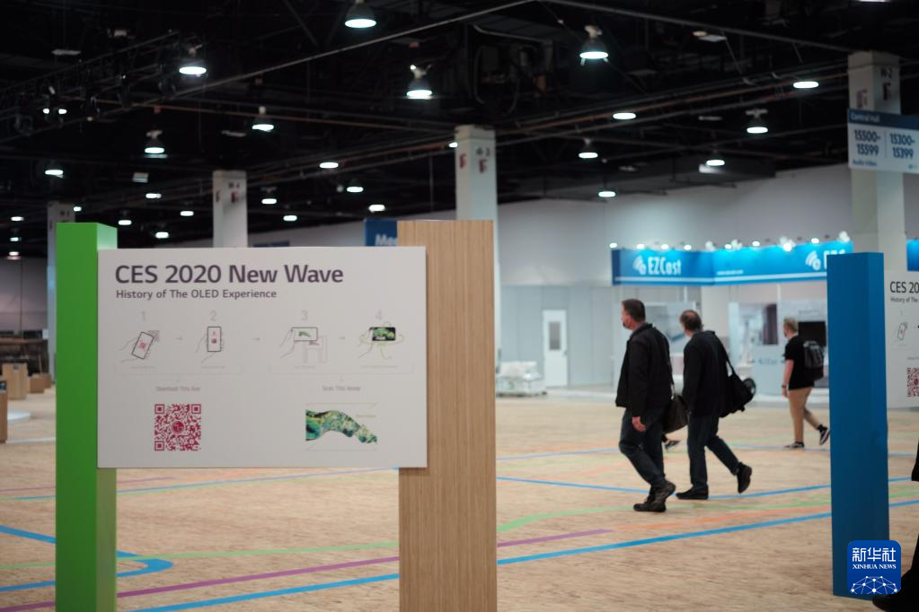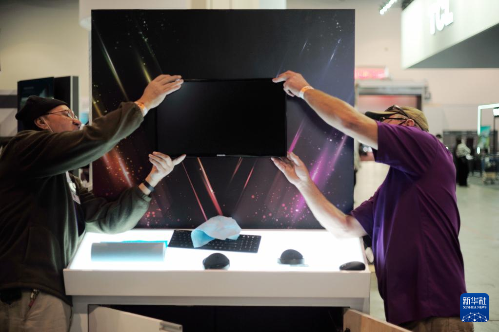 1月4日,在美国拉斯维加斯,工作人员在会展中心布展。 新华社记者 吴晓凌 摄