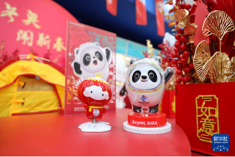 北京冬奥会迎春祈福吉祥礼盒、“北京的春节”系列徽章、“老北京的冰上时光”系列徽章等春节主题特许商品成为年货节的一大亮点。“冰墩墩”“雪容融”毛绒玩具套装、手办、发夹、笔袋、项链等以吉祥物为主要元素的“畅销爆款”也齐聚亮相。