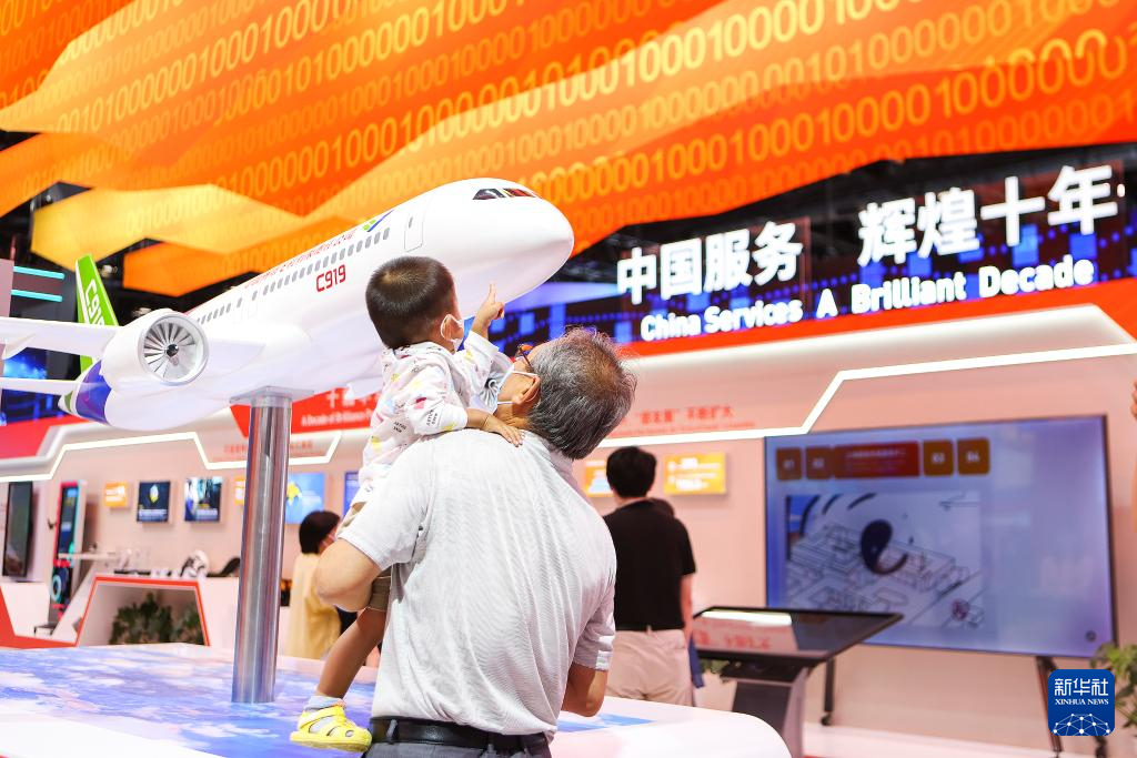 9月5日,观众在服贸会国家会议中心参观中国服务贸易成就展。新华社记者郝昭摄