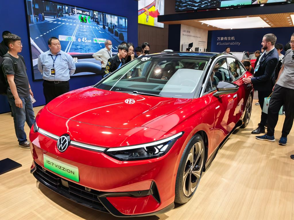 刚刚全球首发的大众ID.7纯电轿车亮相上海车展。新华社记者周蕊 摄