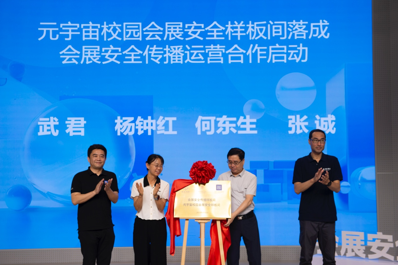 中国安全生产协会会展安全工作委员会主任何东生、北京石油化工学院人文社科学院副院长杨钟红、北京河图联合创新科技有限公司CMO张诚共同为样板间揭牌,同时也开启了“会展安全传播”校企合作运营项目的工作。