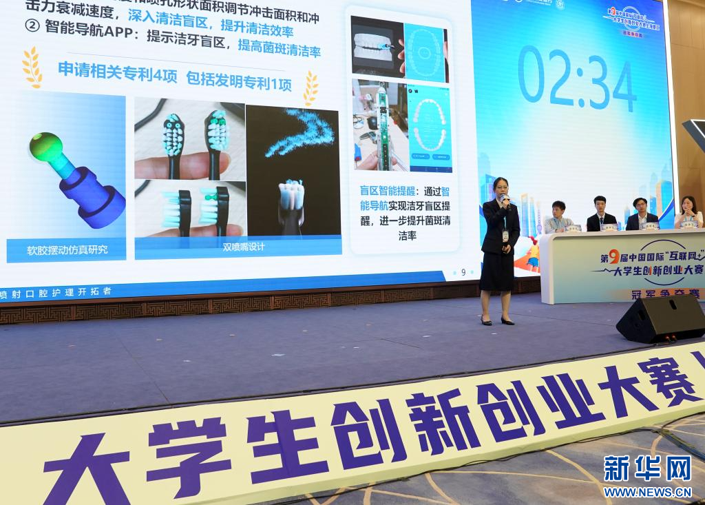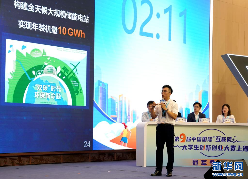 7月26日,在冠军争夺赛现场,华东师范大学的代表在进行路演答辩。
