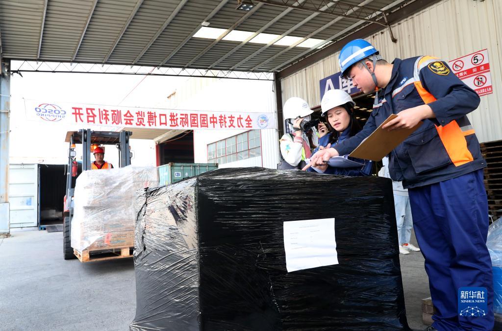 10月17日拍摄的第六届进博会新西兰及南太平洋地区展品核验现场。