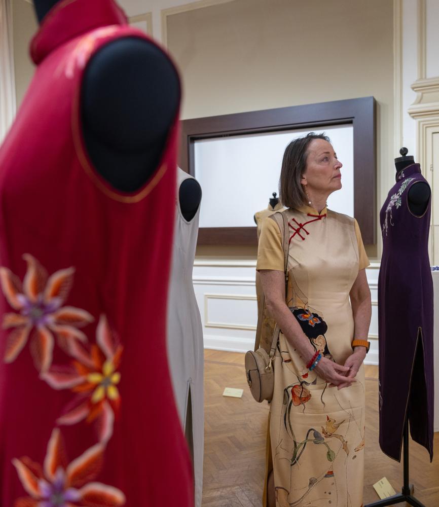 来自罗马尼亚的伊万娜·斯克埃什泰亚努在参观展览后表示:“我之前对20世纪初期的上海风貌和历史不太了解,这次旗袍展让我有机会近距离欣赏旗袍之美,更深入地了解上海。这些旗袍非常精美,将传统与现代结合在一起,能看到制作者一针一线中的巧思。这是一次中欧之间的文化交流,能让欧洲人看到中国文化的不同方面。”