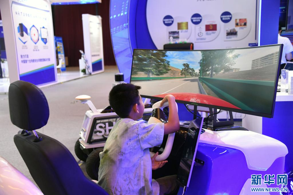 7月2日,小朋友在2024全球数字经济大会数字经济沉浸式体验区体验自动驾驶仿真测试实训系统。
