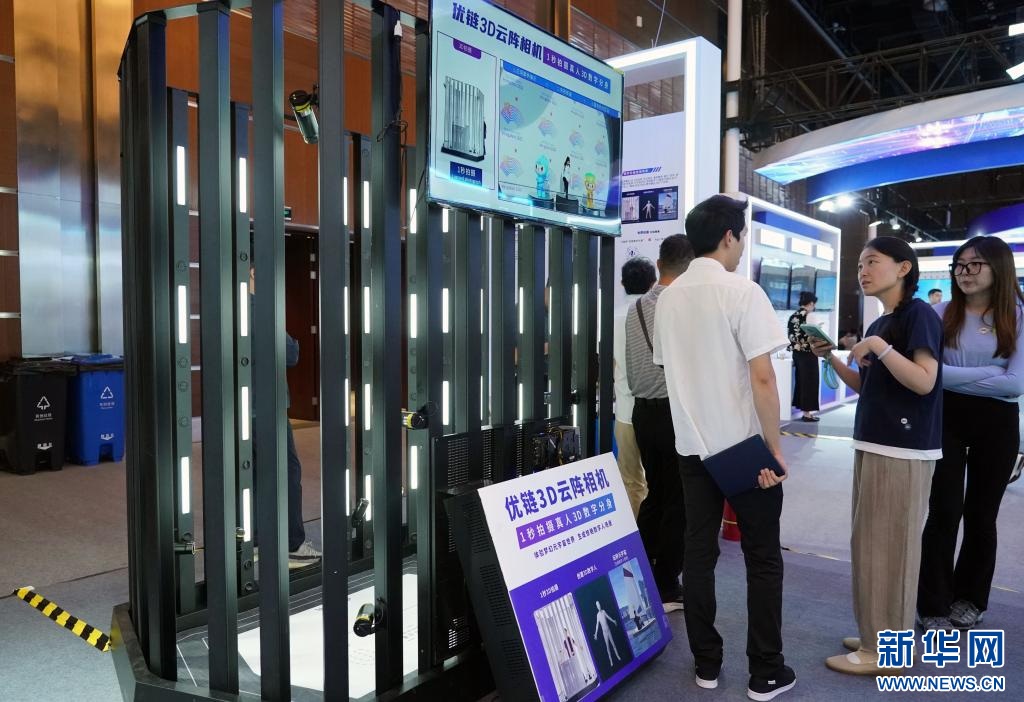 这是7月2日在2024全球数字经济大会数字经济沉浸式体验区拍摄的3D云阵相机。