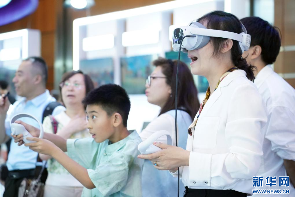 7月2日,观众在2024全球数字经济大会数字经济沉浸式体验区体验一款VR设备。