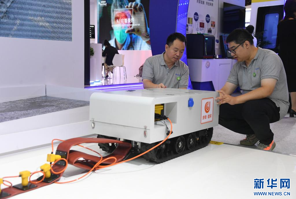 这是7月2日在2024全球数字经济大会数字经济沉浸式体验区拍摄的道路压实度快速检测机器人。