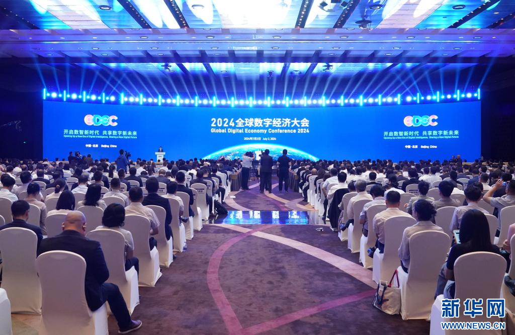 这是7月2日拍摄的2024全球数字经济大会开幕式现场。7月2日至5日,以“开启数智新时代,共享数字新未来”为主题的2024全球数字经济大会在北京国家会议中心举办。据了解,大会打造“1+6+3+N”活动框架,设置开幕式和主论坛、六大高层论坛,配套“数字经济体验周、数字之夜、成果发布会”三项品牌特色活动,组织多场论坛和系列活动。