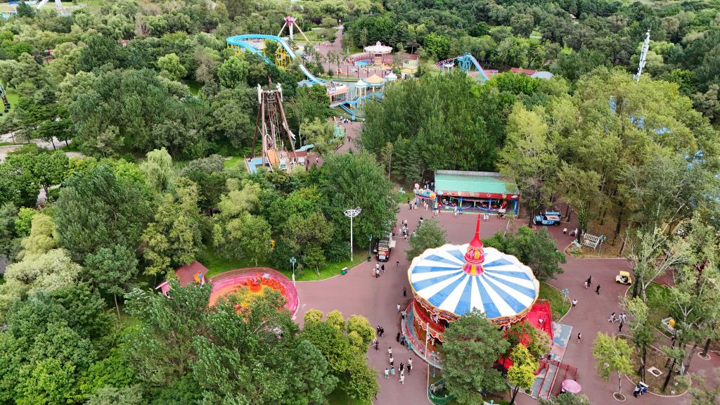 这是8月20日拍摄的太阳岛风景区游乐区(无人机照片)。