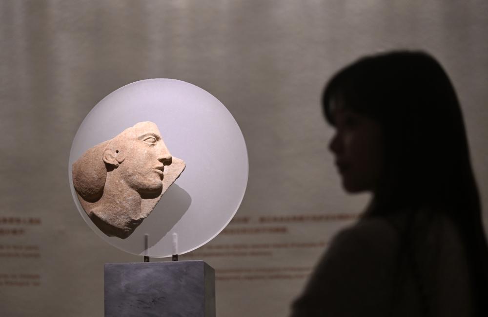 11月5日,观众观看大理石女性头像浮雕圆盘残片。