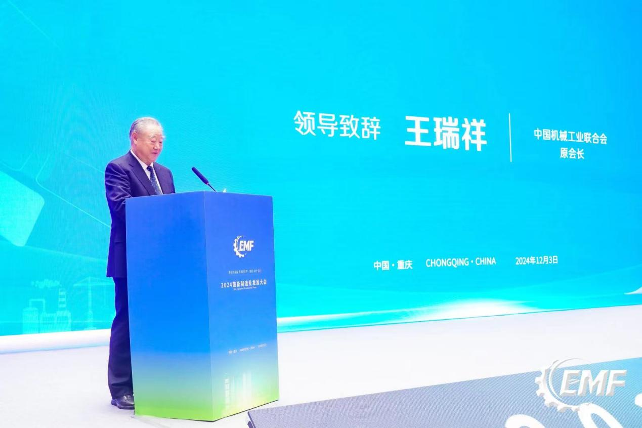 图为中国机械工业联合会原会长王瑞祥发表致辞。