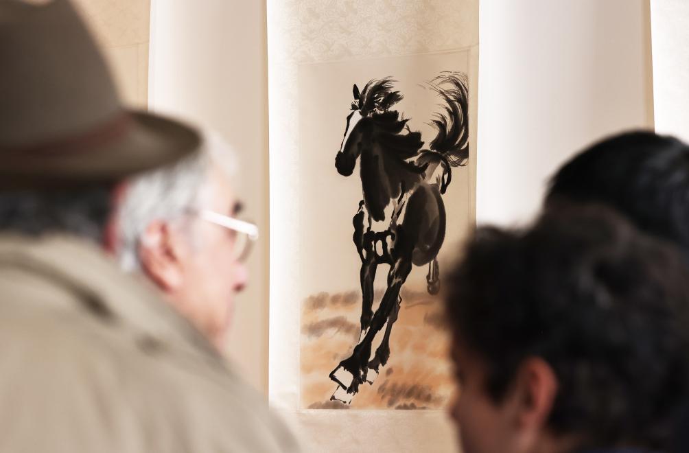 12月20日,在法国巴黎中国文化中心,嘉宾在“心境映象——荣宝斋当代艺术展暨木版水印特展”上参观。