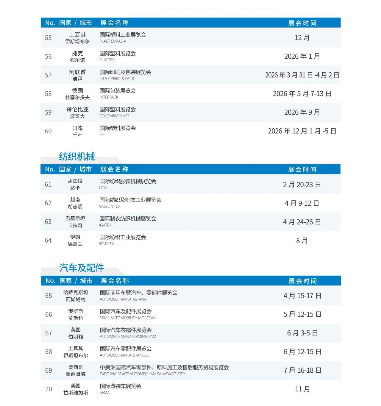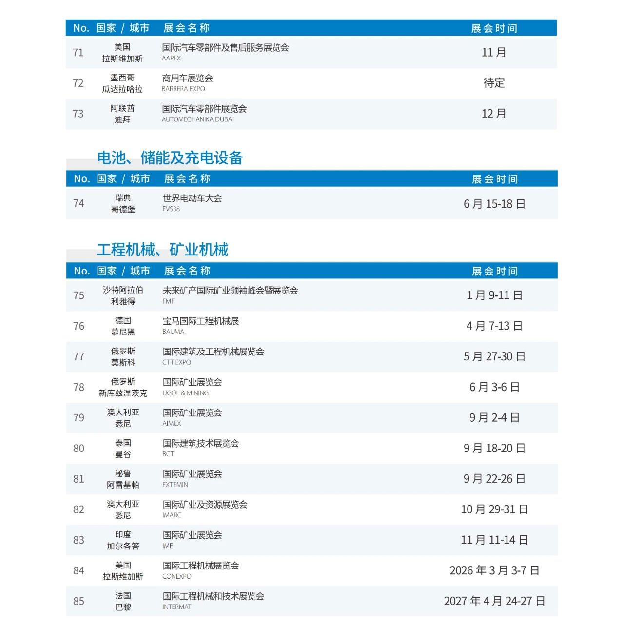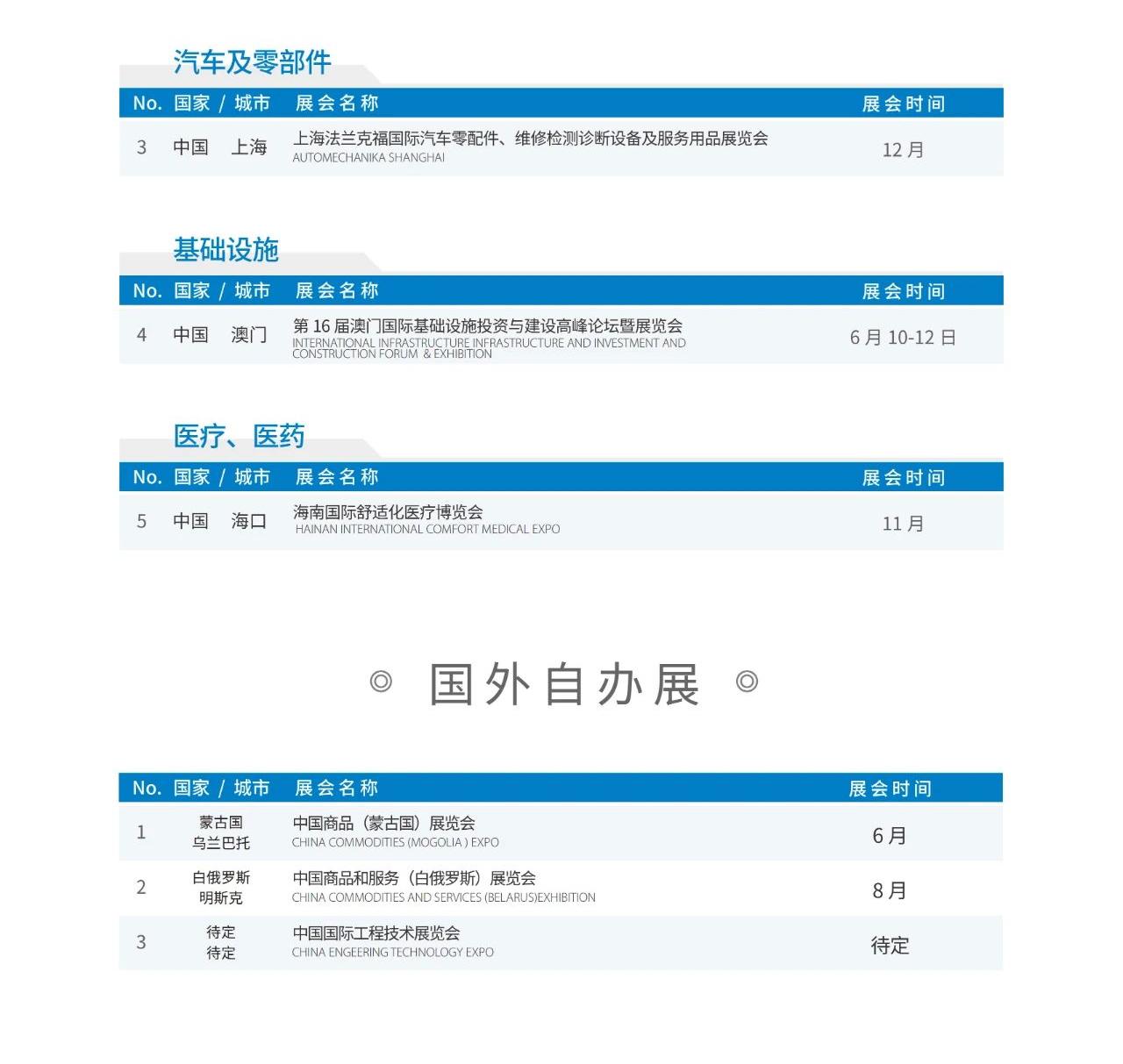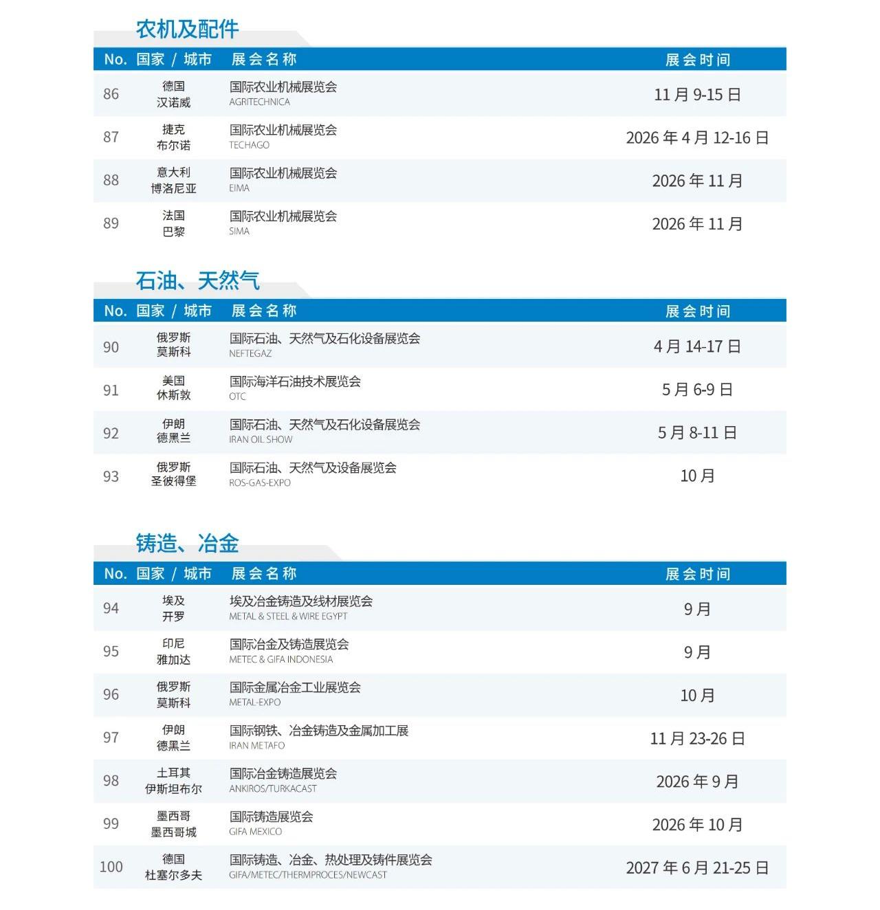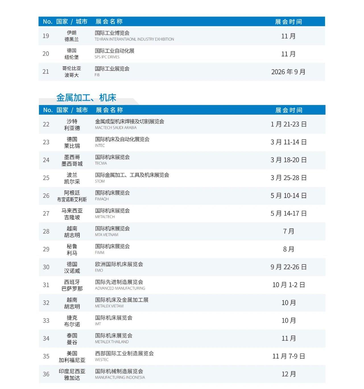 近日,央企会展平台西麦克国际展览有限责任公司(简称“西麦克展览公司”)发布2025年全球展览计划,覆盖亚洲、欧洲、美洲、中东等全球重要市场。2025年西麦克展览公司将持续聚焦机械制造、汽车及零部件、进口消费品和文旅四大核心行业。同时,其出国代理展览项目也将覆盖工业、自动化、金属加工、汽车等多个领域,聚焦行业前沿,为中国企业提供更为广阔的展示平台与合作机遇,助力中国企业国际化发展。