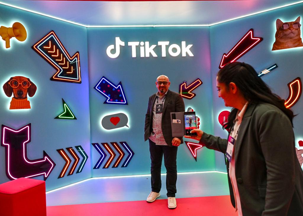 2月25日,人们在卡塔尔多哈举行的2025卡塔尔网络峰会上拍照留念。