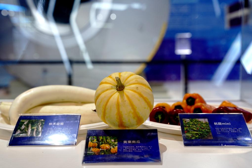 4月23日在2025年“中国航天日”科普展上拍摄的太空育种产品。